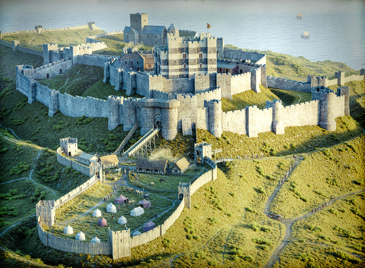 Dover Castle's original entrance, along with several lost towers and long-gone defensive walls, has been unveiled for the first time thanks to a state-of-the-art digital model.