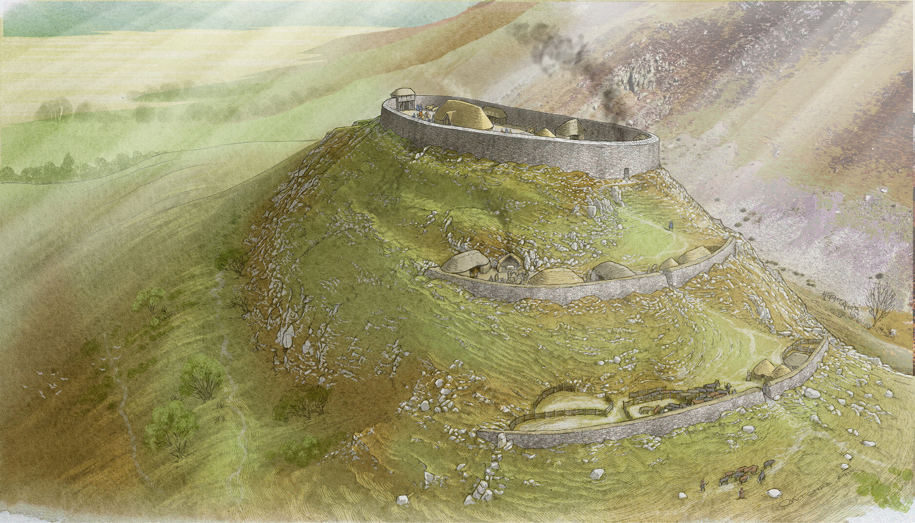 Excavations at Tinnis Fort, which overlooks Merlin’s Grave, revealed that this prominent hillfort was occupied around the late sixth and early seventh centuries AD.
